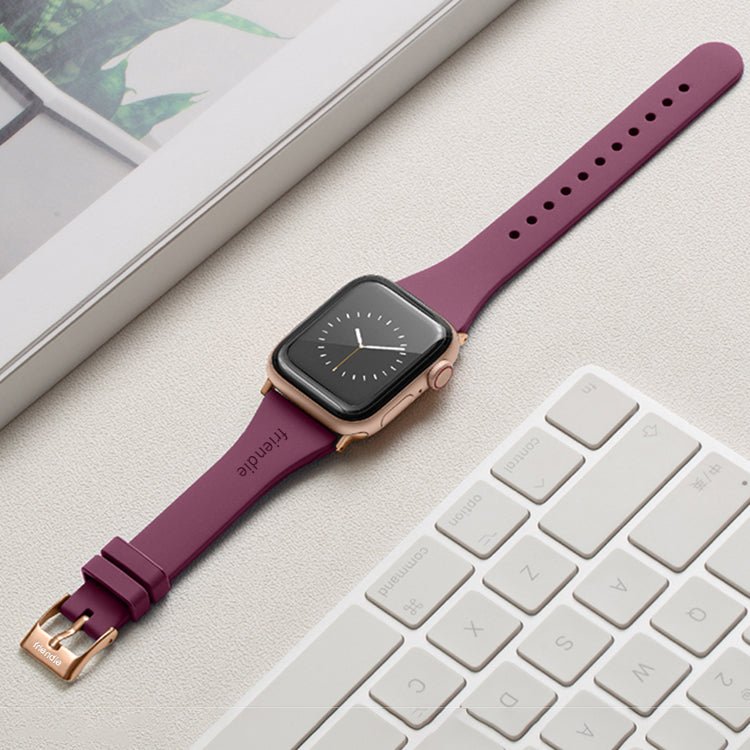 Silicone Band in Burgundy with Gold Classic Buckle – The Gippsland – Compatible with Apple Watch Size 38mm to 41mm